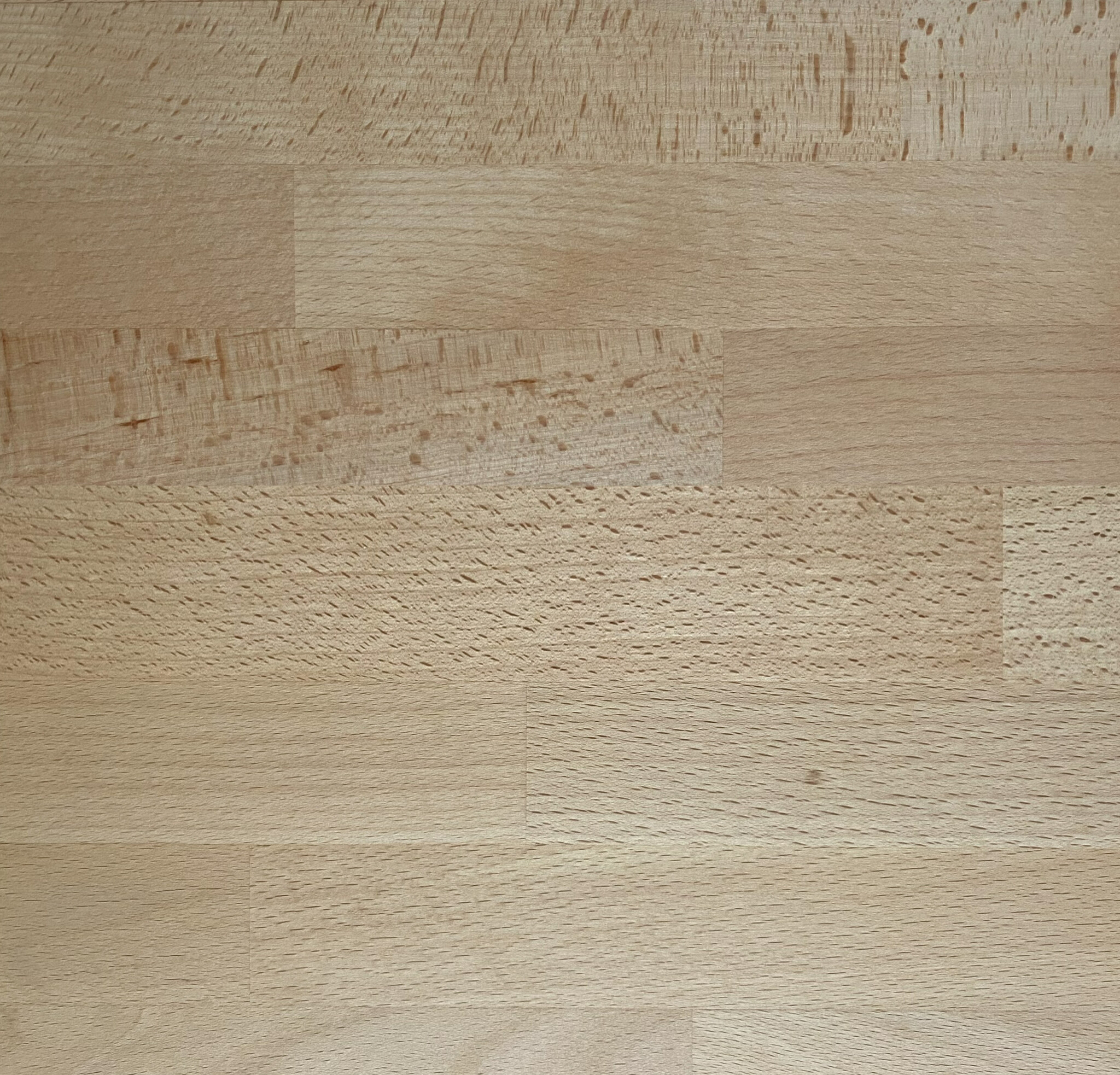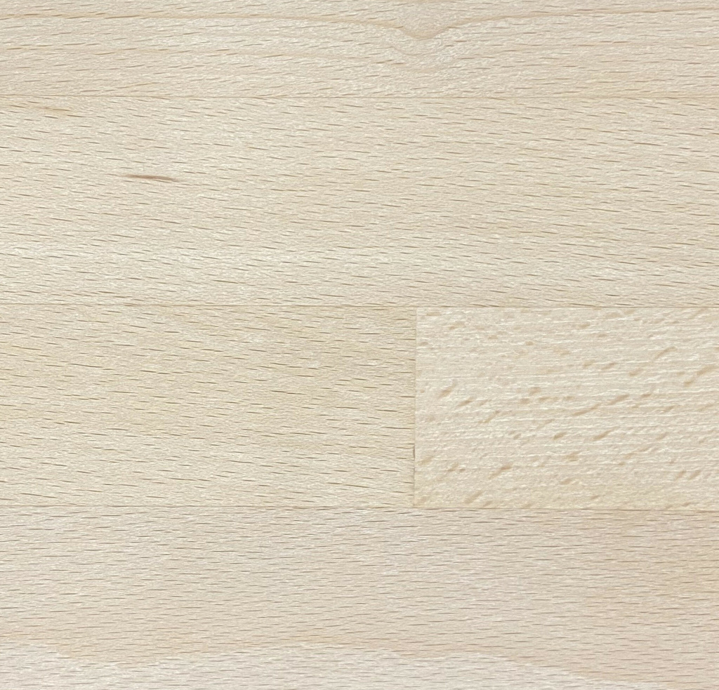 Bøg er en klassisk massivtræs¬overflade med varme, lyse nuancer og et blødt, jævnt åremønster. Den naturlige glød giver rummet en behagelig, afbalanceret atmosfære, som fungerer godt i både moderne og traditionelle køkkener. Overfladen fremstår harmonisk og tidløs og er let at integrere i lyse indretningsstile.